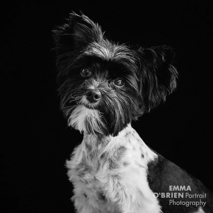 I brought my black backdrop along for some more formal portraits, especially easy to set up with tiny dogs, and captured this set of photographs. Dogs are often more comfortable in their own space, so for clients who'd like a more formal look to their images as well as shots in the garden, this is a super option.