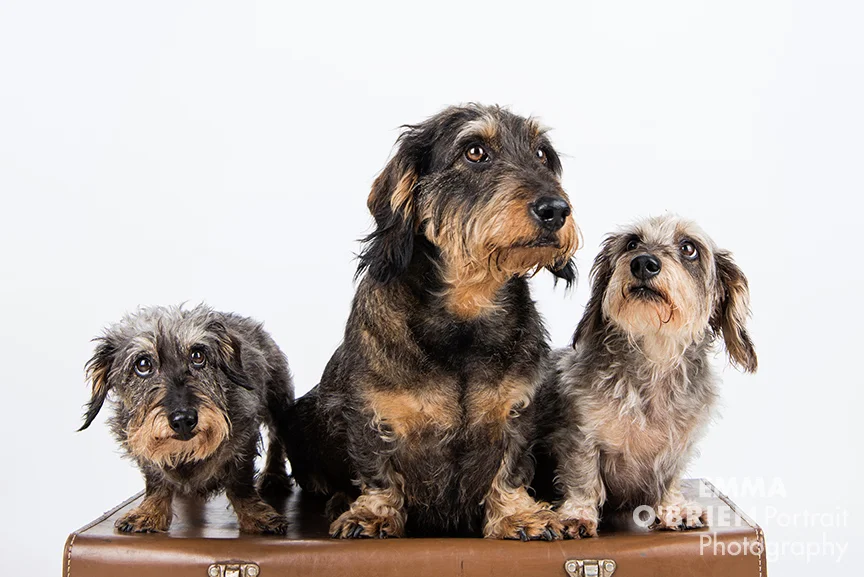 I was commissioned to photograph this this trio of friends recently. Their mom told me that Tank gets very nervous if he travels, so we needed to do the shoot at home using my portable studio set up. The dogs were a little suspicious as I got the backdrop and lights ready, but the swift arrival of a selection of treats soon put an end to that worry.